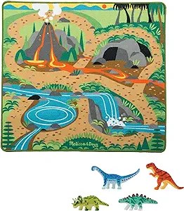 For those of you looking for a smaller area rug to use as a playmat, Melissa & Doug has created a beautiful activity rug with a prehistoric theme. Small enough to be machine washable, this durable volcanic carpet will keep little paleontologists busy. The playmat also comes with a T-Rex, Triceratops, Stegosaurus, and Apatosaurus, which will inspire your toddler to start playing as soon as you open the box. Find the Melissa & Doug Dinosaur Activity Play Rug on Amazon Here.