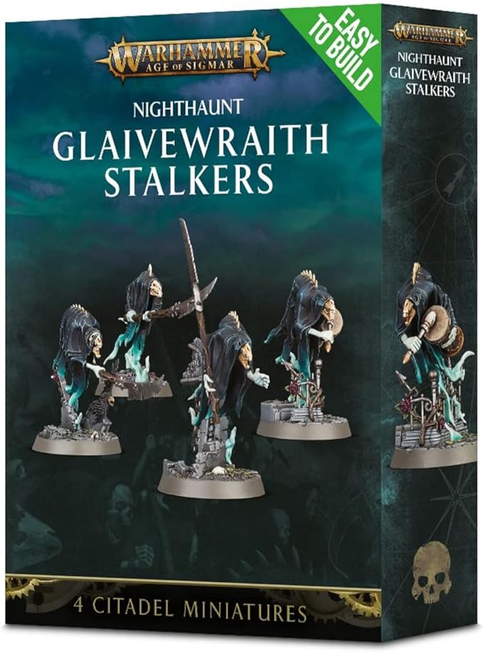 Glaivewraith Stalkers can be picked up in three different boxes from Games Workshop. The Warhammer Age of Sigmar: Nighthaunt + Paint Set comes with 4 models, Citadel Easy-To-Build Nighthaunt Glaivewraith Stalkers Warhammer Age of Sigmar also comes with 4 models, and finally the Warhammer Age of Sigmar: Soul Wars starter set with five Glaivewraith Stalkers.